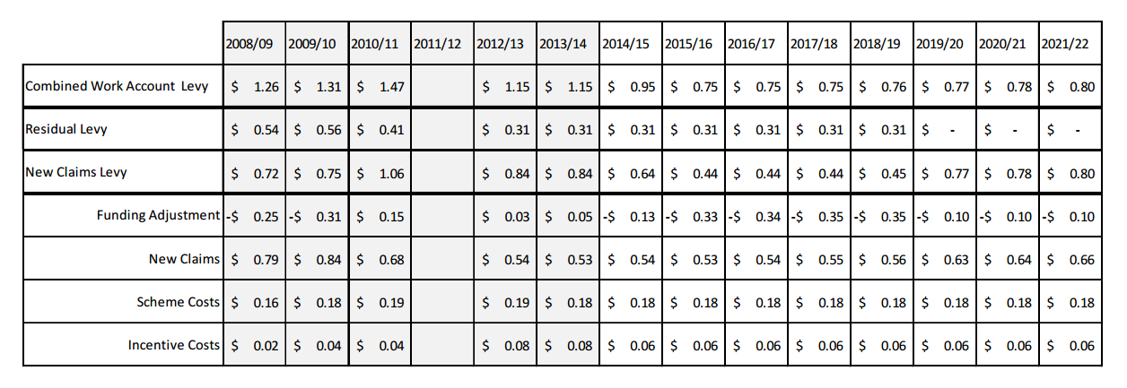 Table 1 below indicates the effect of the residual levy and funding adjustments of the past six years and uses information provided by ACC and best estimations on future years projections. (Data from 2011/2012 was not examined but has been included for completeness).